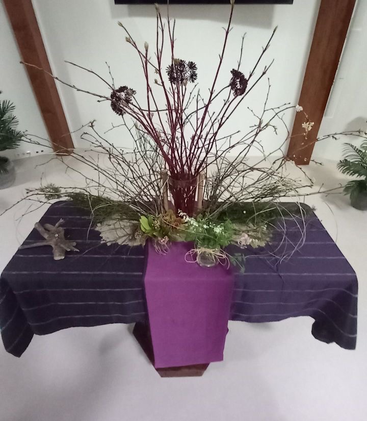 Rode bloemen zijn toegevoegd aan de kornoeljetakken als teken van liefde en de geest.