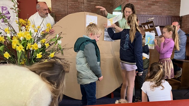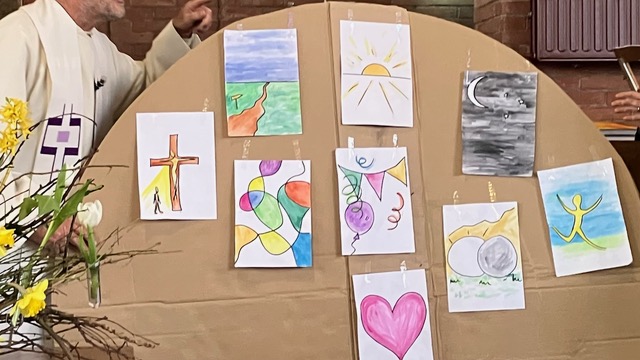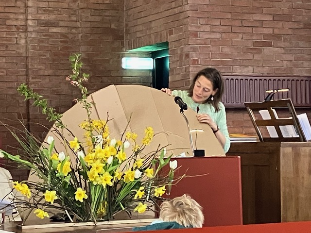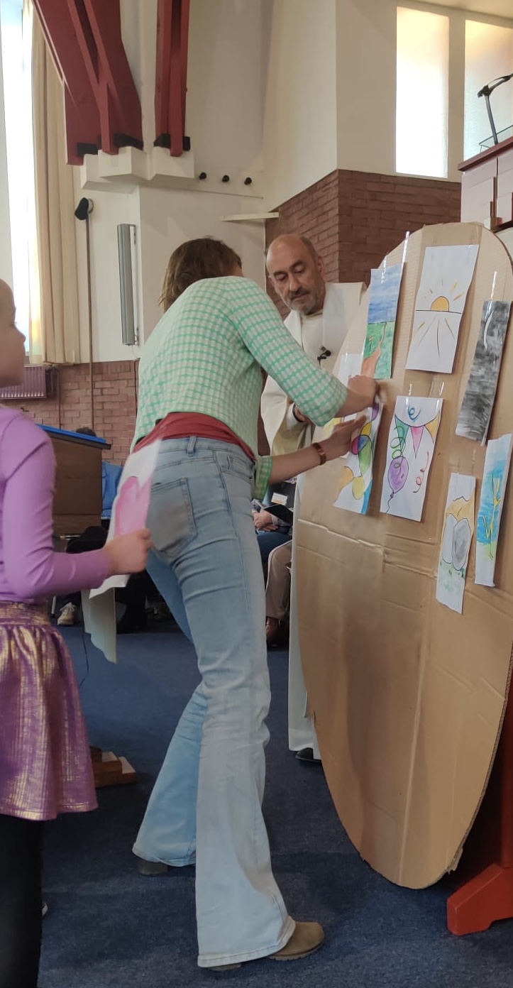 Via mooie liederen, de liturgische schikking, de lezing van Matteüs 28: 1-15 over de vrouwen bij het graf en de overweging beleefden we het opstandingsverhaal. Ook de (visuele) bijdrage voor jong en oud over "de kracht van de Opstanding" waarbij op de loodzware rots de elementen uit het lied "Alles is nieuw" van de Make Some Noise Kids werden opgeplakt hielpen daarbij. Plus dat we konden nadenken en eventueel op de gele post-its konden delen waarvoor we zelf kracht wilden vragen. "de kracht van de Opstanding" Door de foto's zien we deze Paasmorgen terug. ![]() ![]() ![]() ![]() ![]() ![]() ![]() ![]() ![]() ![]() ![]()