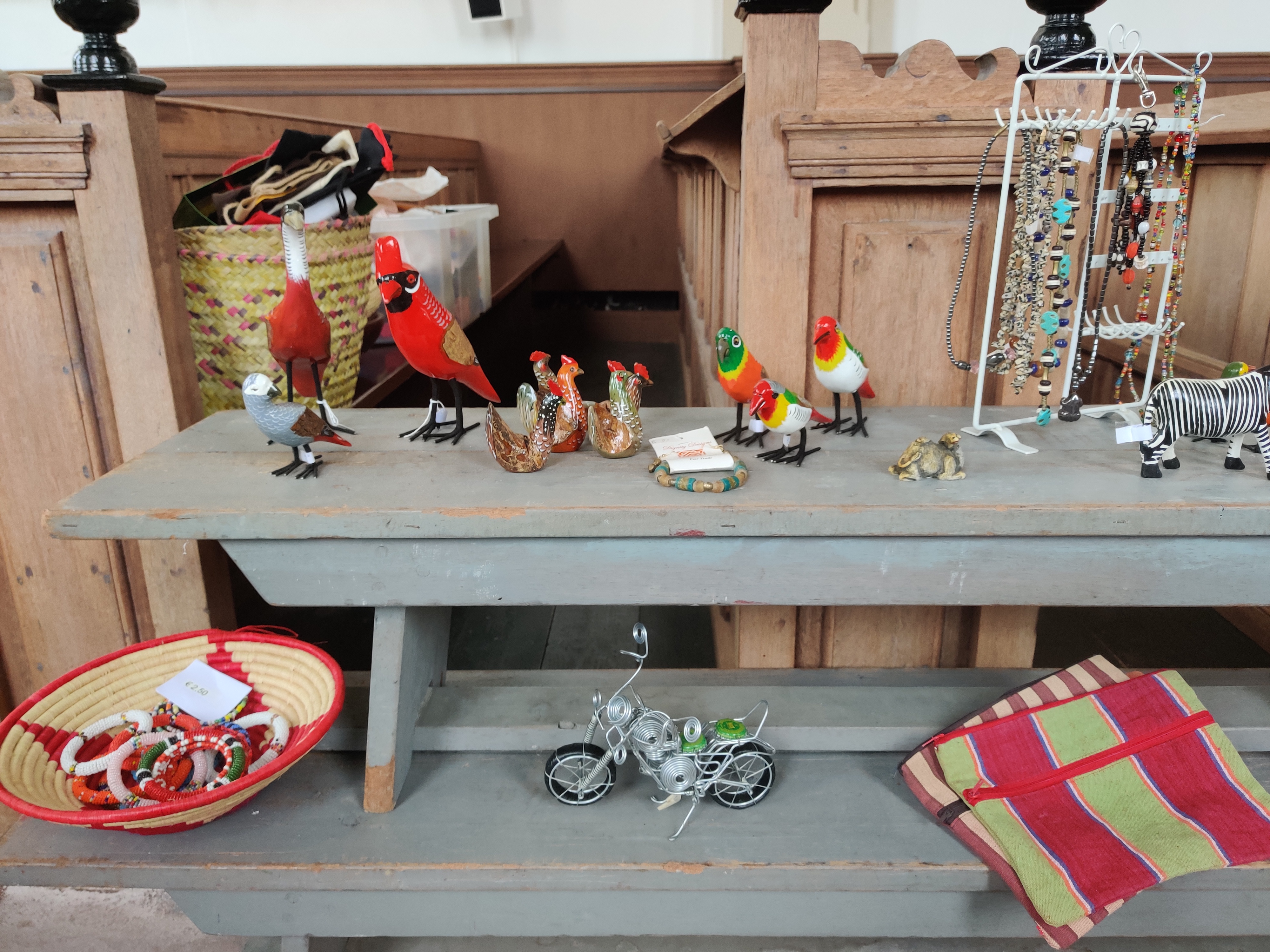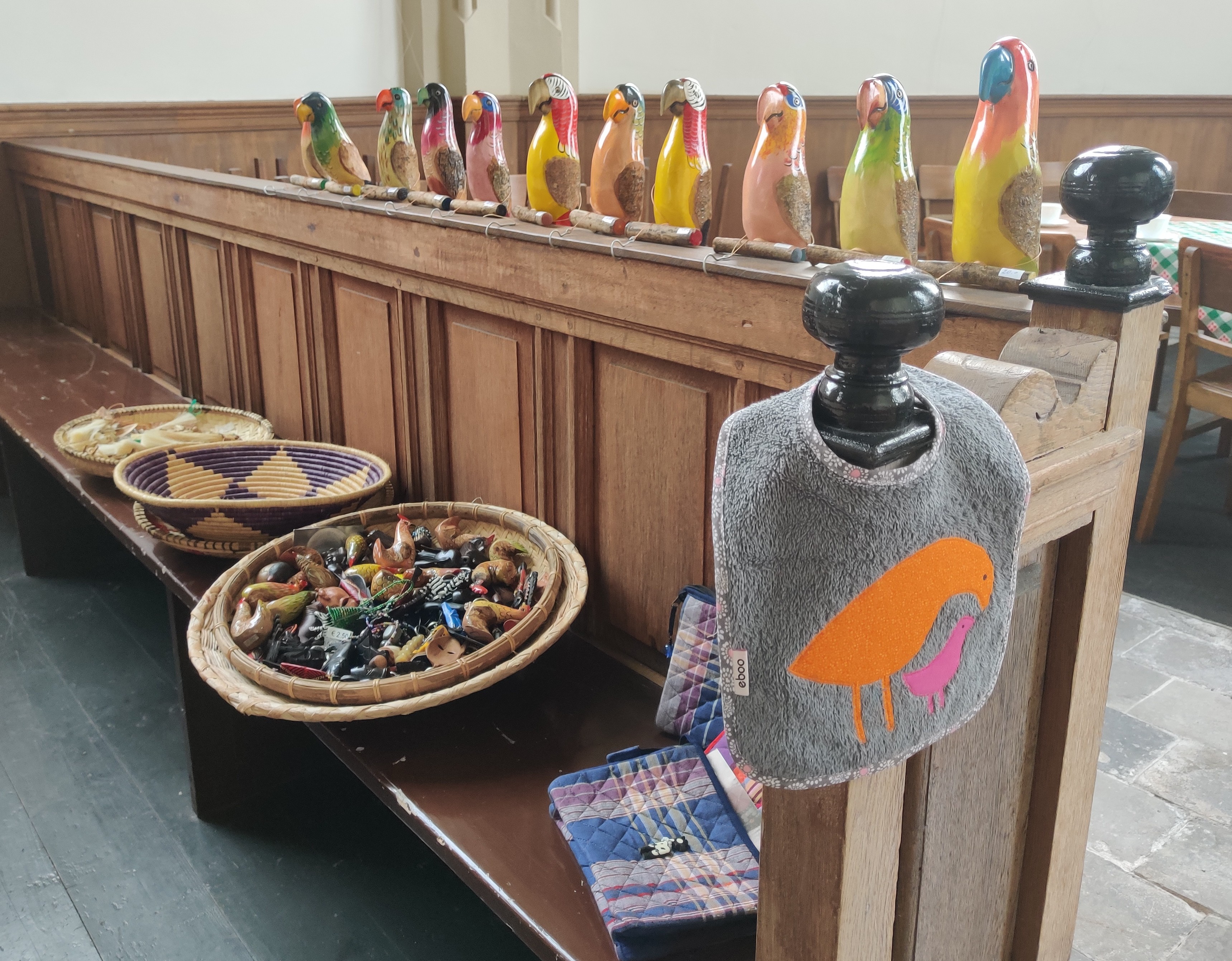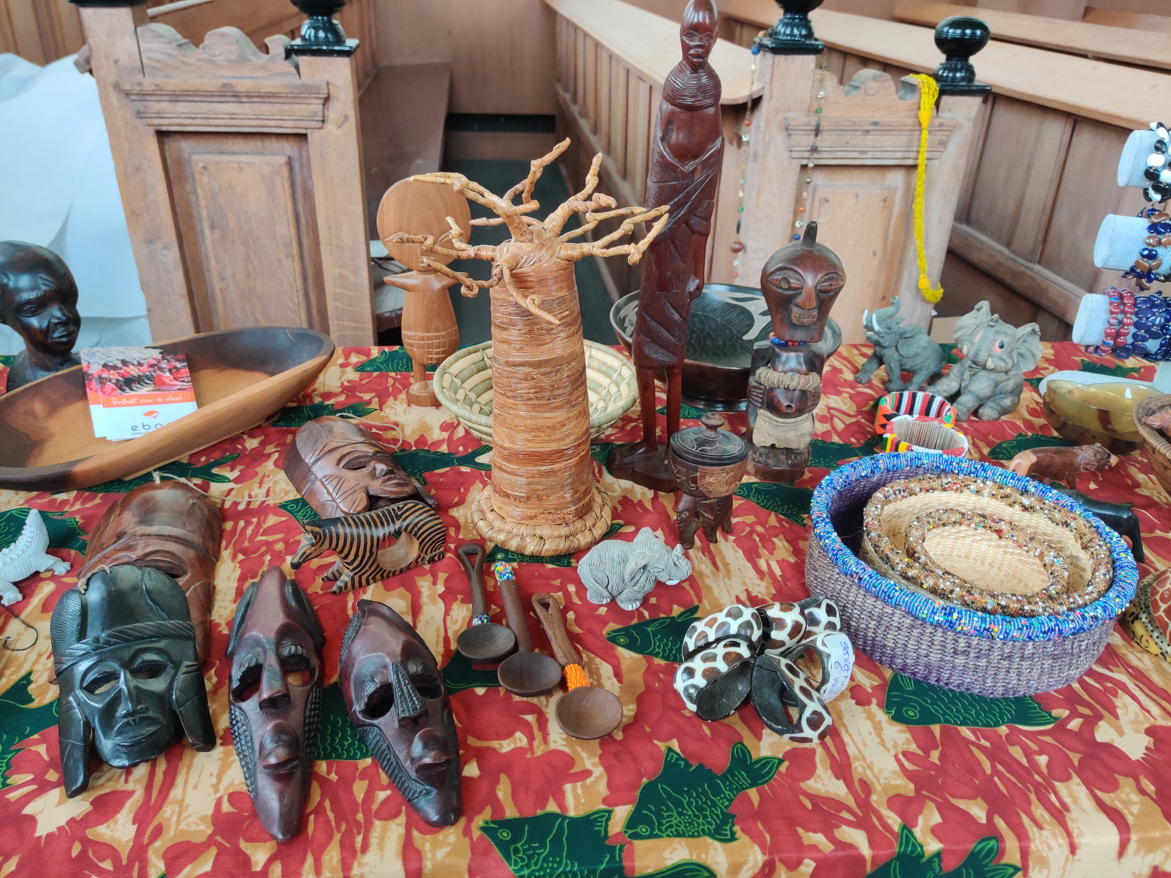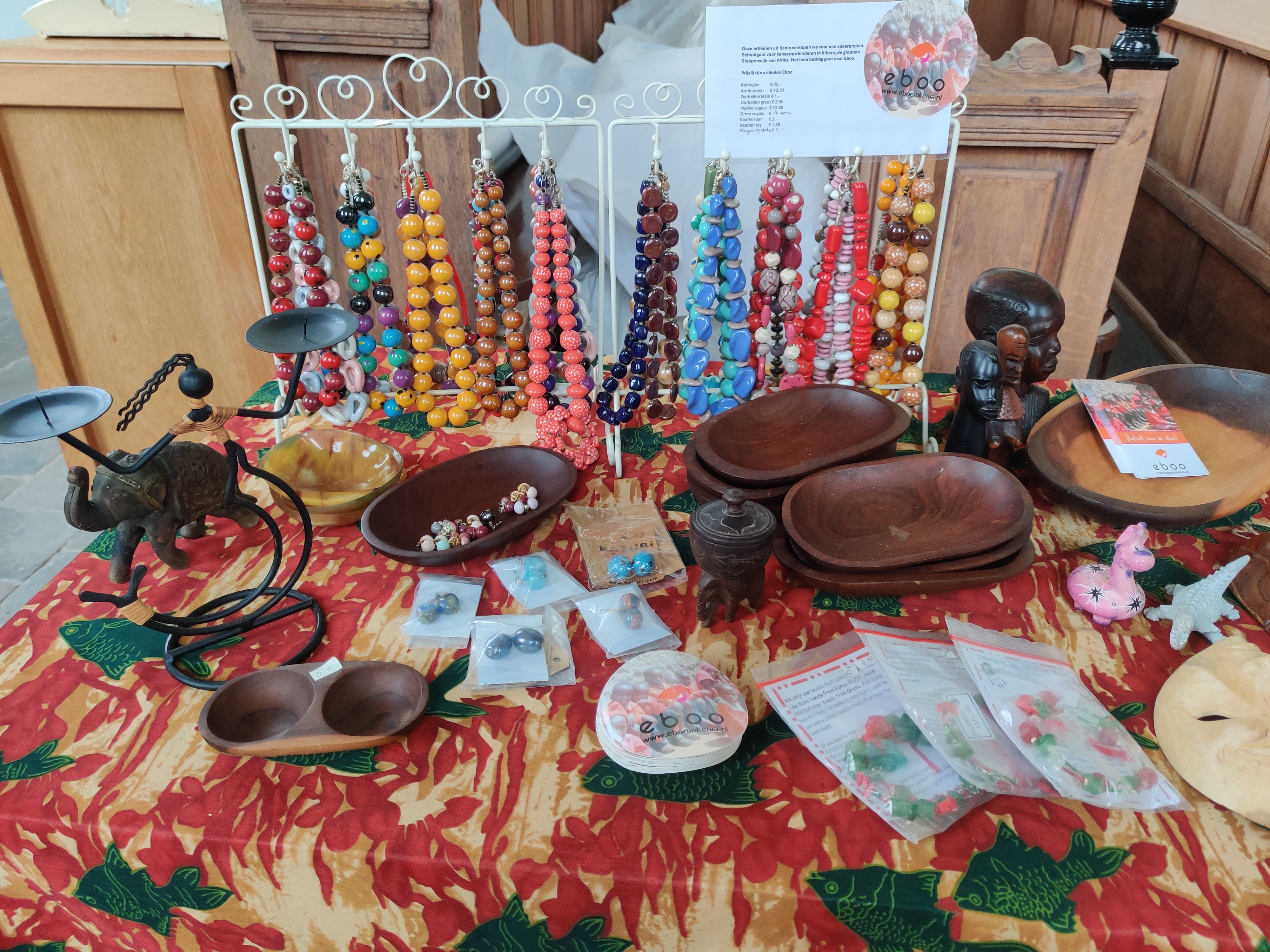 De 1e collecte was deze zondag bestemd voor dit doel en leverde (na een eerste snelle telling) ongeveer €250 op. Daarnaast had Fenneke ook veel spulletjes uit Kenia meegenomen om te verkopen voor dit doel. Deze spullen koopt ze in bij kleine makers of werkplaatsen voor bijvoorbeeld vrouwen in Nairobi. Zo ondersteunt de stichting dus nog meer mensen in Kenia. De verkoop leverde ongeveer €450 op en de stichting ontving ook nog €180 aan giften. Een mooi resultaat!