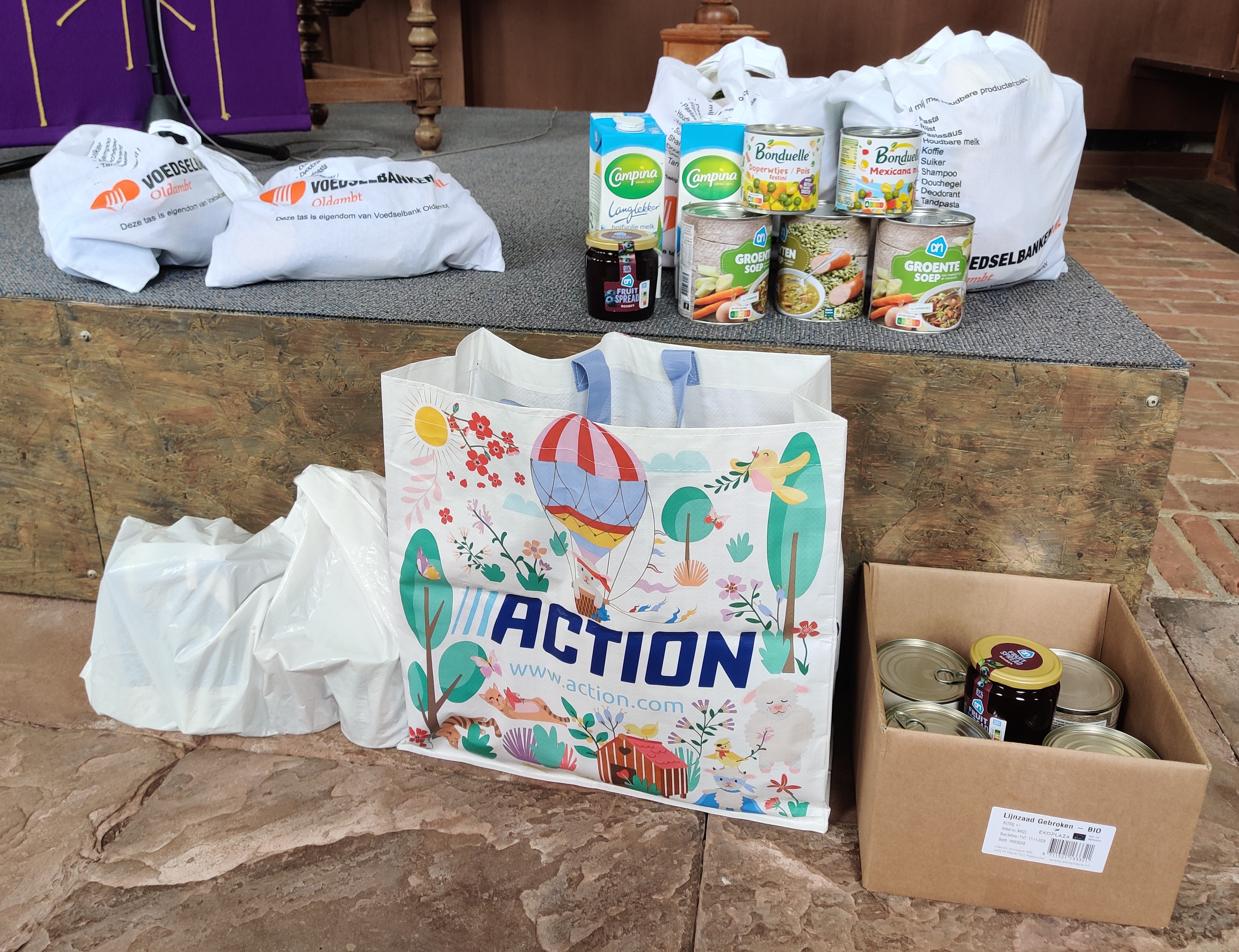 Dat diaconaal werk zich richt op hulp aan mensen ver weg én dichtbij kwam deze zondag goed naar voren. Toevallig was deze zondag namelijk ook de laatste dag dat er producten ingeleverd konden worden voor de inzameling voor de Voedselbank.