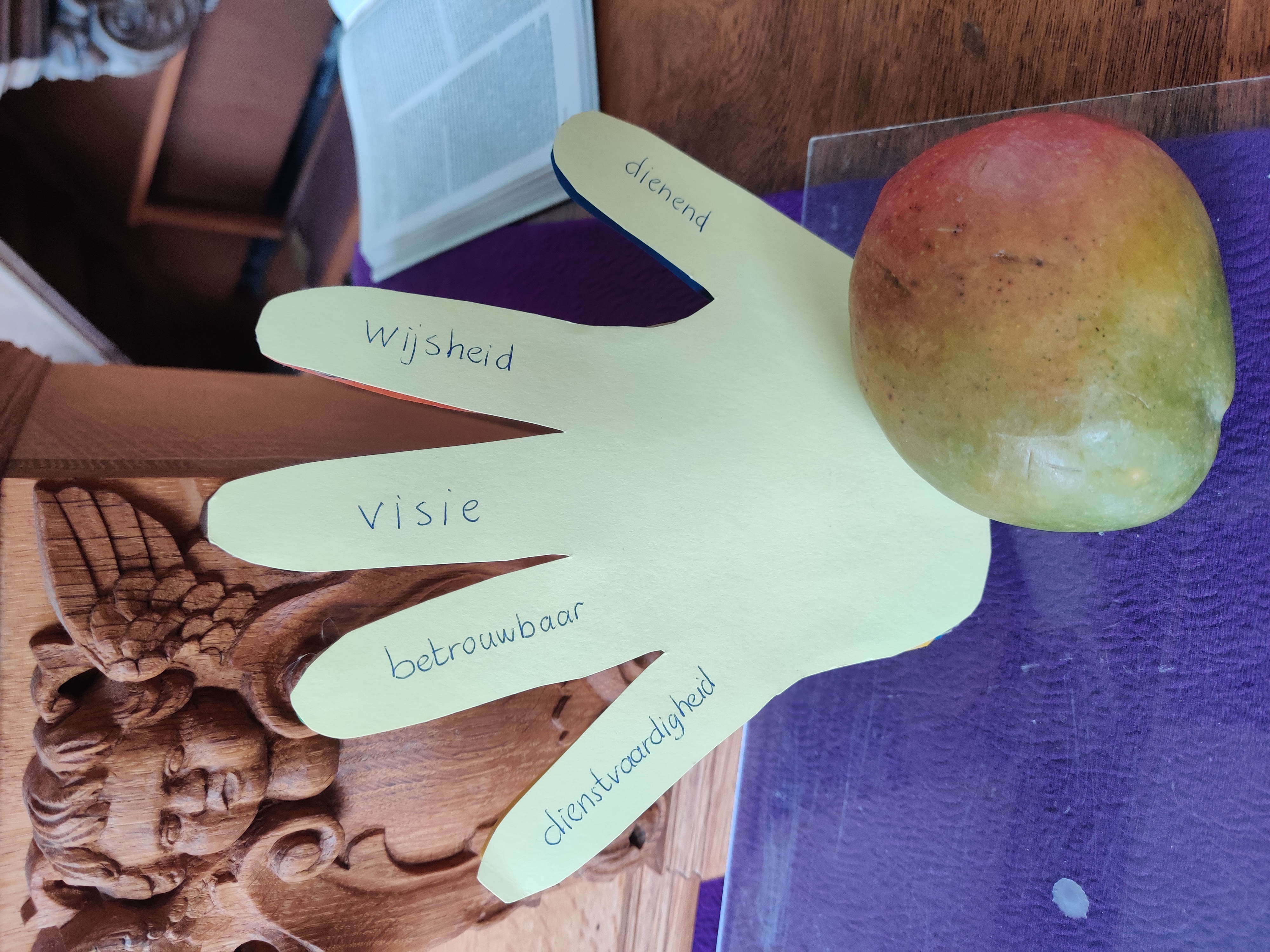 We lazen uit Psalm 119 ‘Uw woord is een lamp voor mijn voet, een licht op mijn pad’. Uit Lucas 18 lazen we de woorden: De mensen probeerden ook kleine kinderen bij hem te brengen om ze door hem te laten aanraken. Toen de leerlingen dat zagen, berispten ze hen. Maar Jezus riep de kinderen bij zich en zei: ‘Laat ze bij me komen, houd ze niet tegen, want het koninkrijk van God behoort toe aan wie is zoals zij. Ik verzeker jullie: wie niet als een kind openstaat voor het koninkrijk van God, zal er zeker niet binnengaan!’ Vervolgens zongen we natuurlijk ‘Laat de kinderen tot mijn komen’.