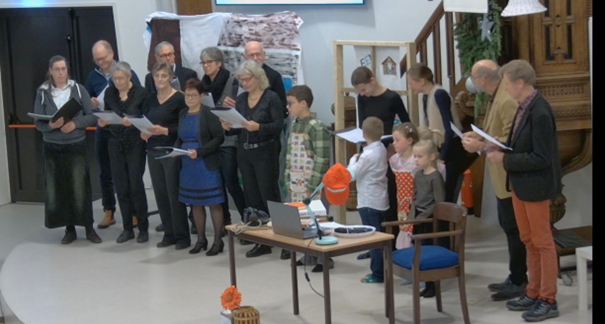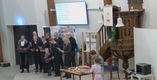 Voor het zingen van de liederen werden de kinderen ondersteund door een aantal gemeente leden die het zanggroepje vormden.