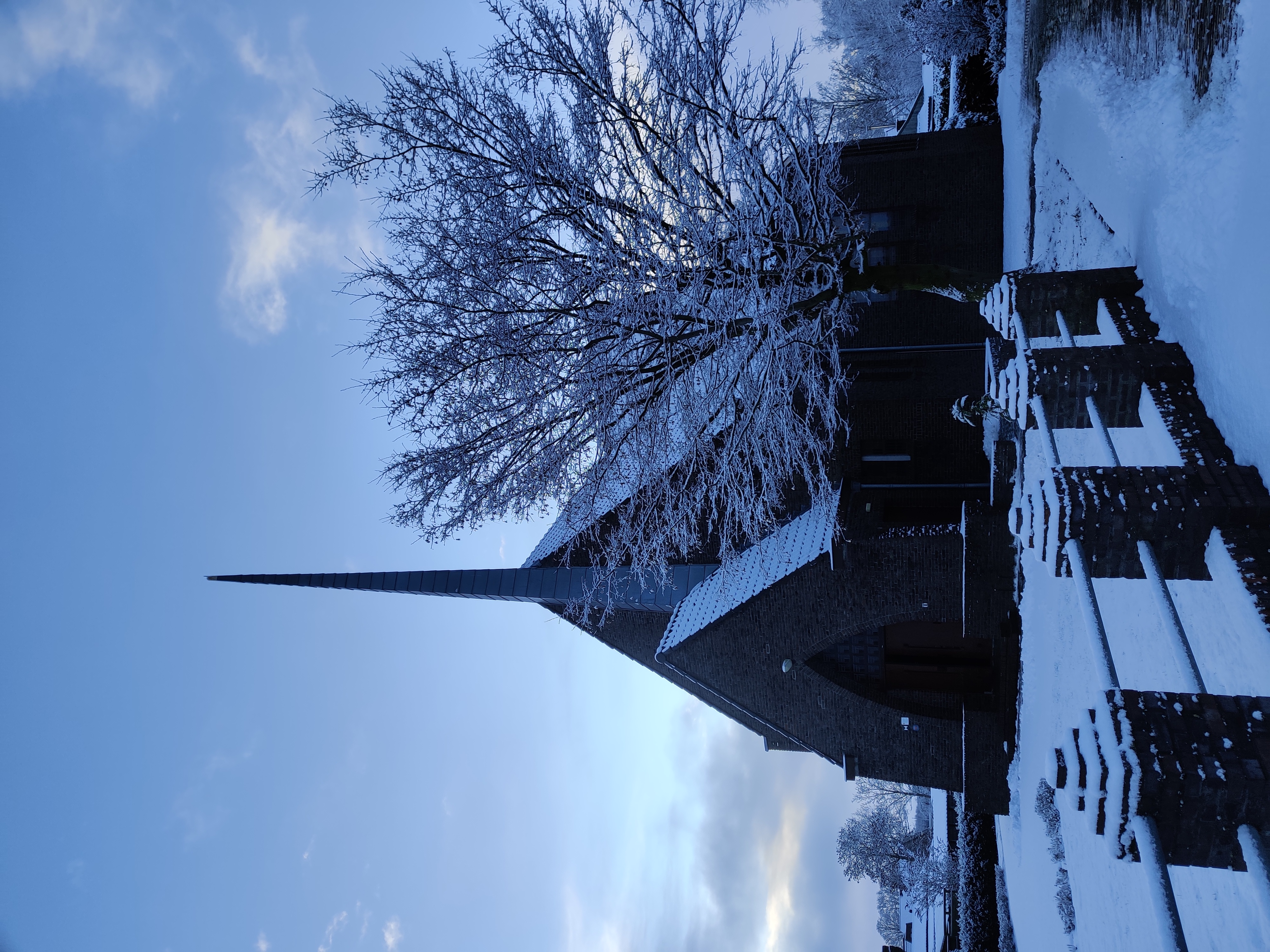 4 januari - de eerste dienst van het nieuwe jaar. We werden wakker in een witte wereld! Ondanks dat de wegen glad waren, kwamen toch vanuit alle hoeken van De Dollert en Midwolda gemeenteleden naar de kerk van Oostwold. Daar had koster Kees er al voor gezorgd dat het pad naar de kerk helemaal schoon was.