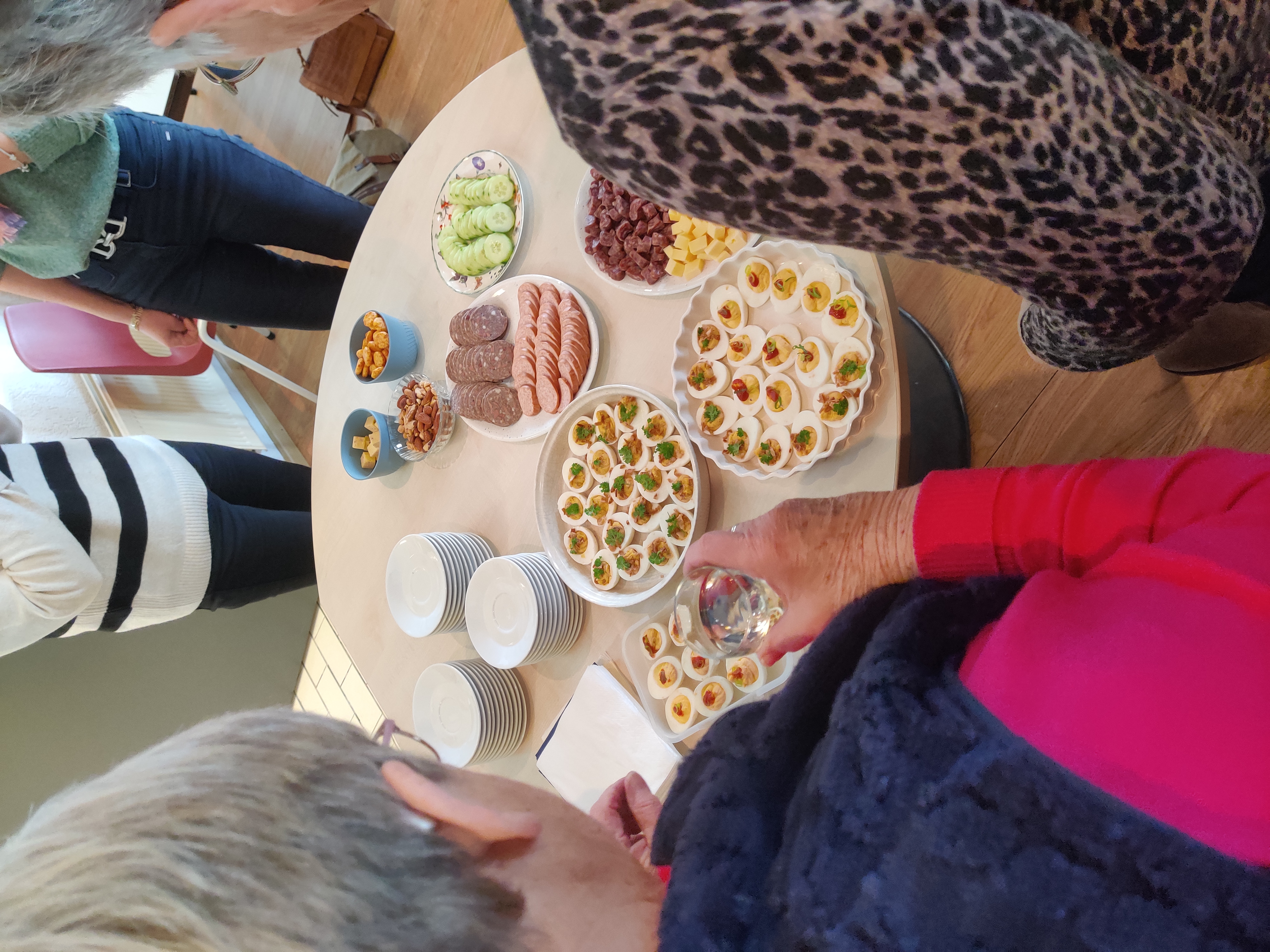 En daarna was het tijd voor de (in De Dollert) traditionele nieuwjaarsborrel. Verschillende mensen hadden weer drankjes en hapjes meegenomen. Wat te kiezen? Er was voor ieder wat wils en de hapjesschalen waren dan ook al snel leeg.
