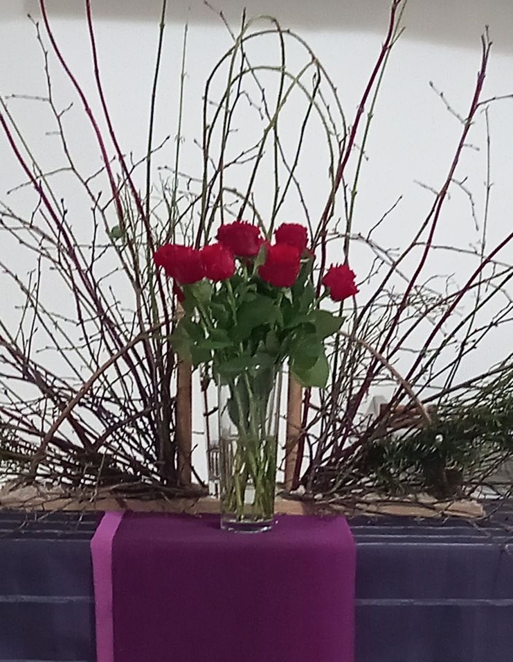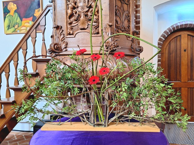 ![]() Liturgische schikking Goede Vrijdag in de Verbinding in Midwolda Uitleg schikking (Gemaakt door Janneke Engelage) ![]() Scheemda De Ontmoeting (Gemaakt door Katrien en Ludolf Niemeijer) Goede Vrijdag, De laatste dagen van onze Heer, het ultieme lijden van de mensenzoon en de Zoon van God. De doornen en de rode bloemen symboliseren de doornenkroon en het bloed. ![]() in de Marktpleinkerk in Winschoten Uitleg schikking (Gemaakt door Janny Geertsema-Kieft) | ||